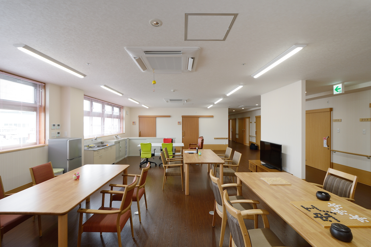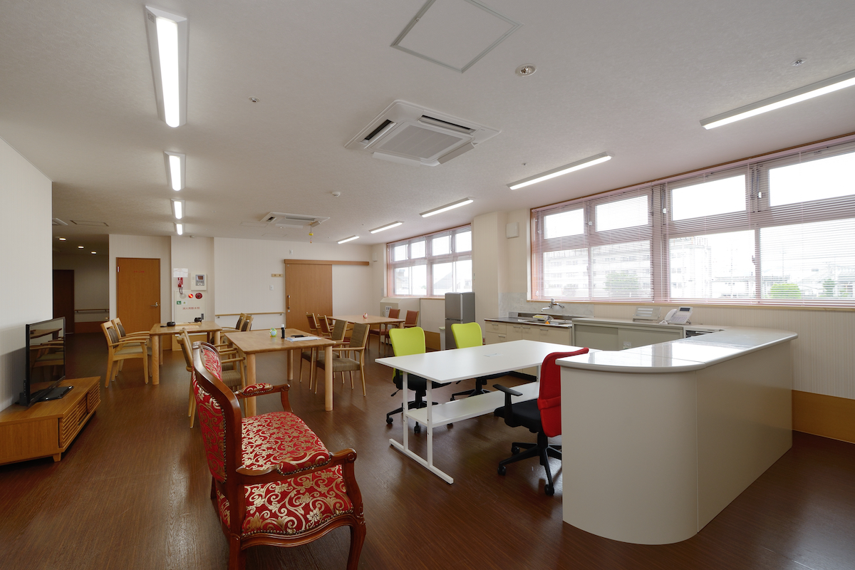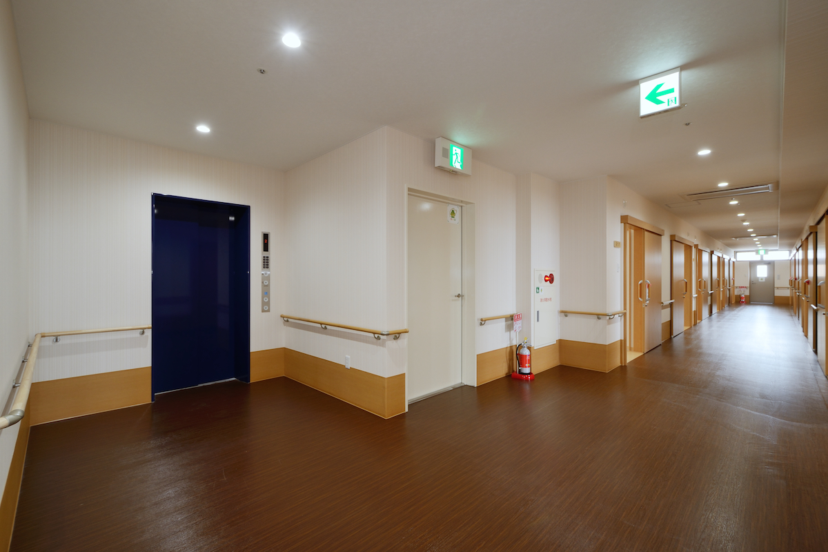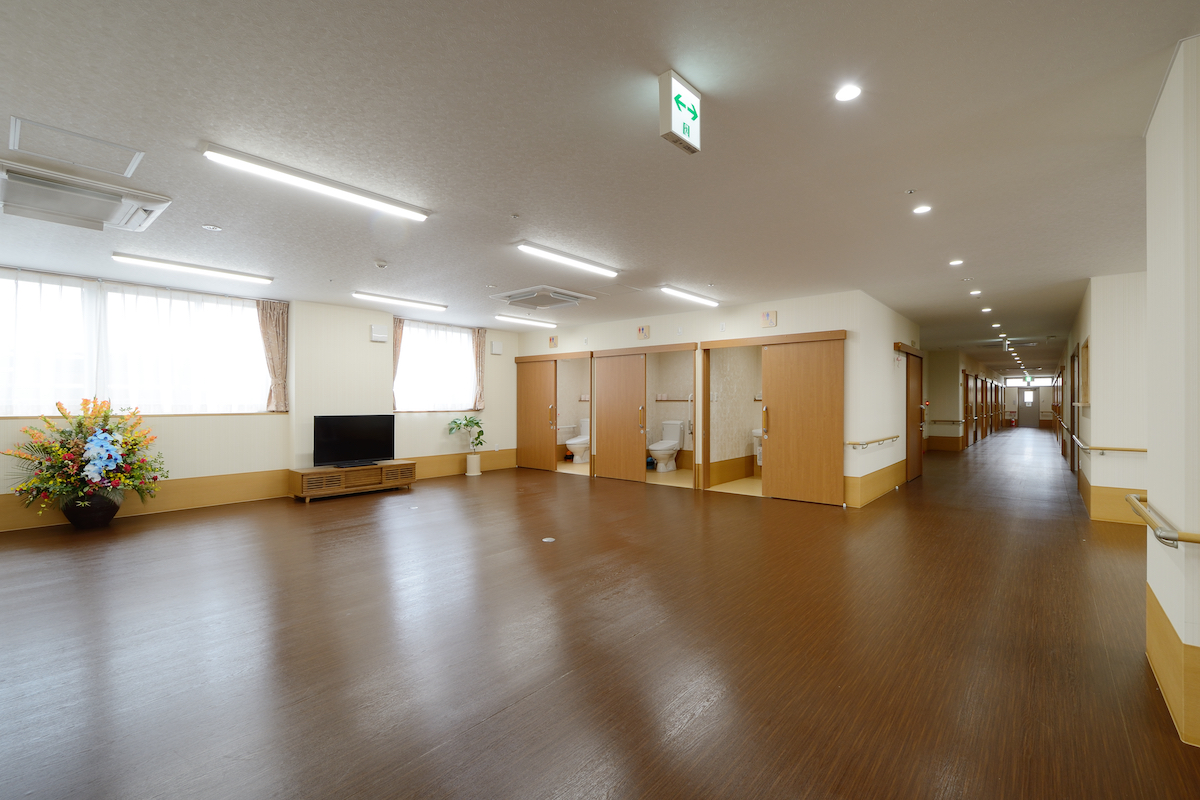大型の老人介護施設では入居者様が快適であることを第一に考えました。入居者様の負担が少しでも少なくなるよう段差をなくすなどバリアフリーを考えた設計となっています。