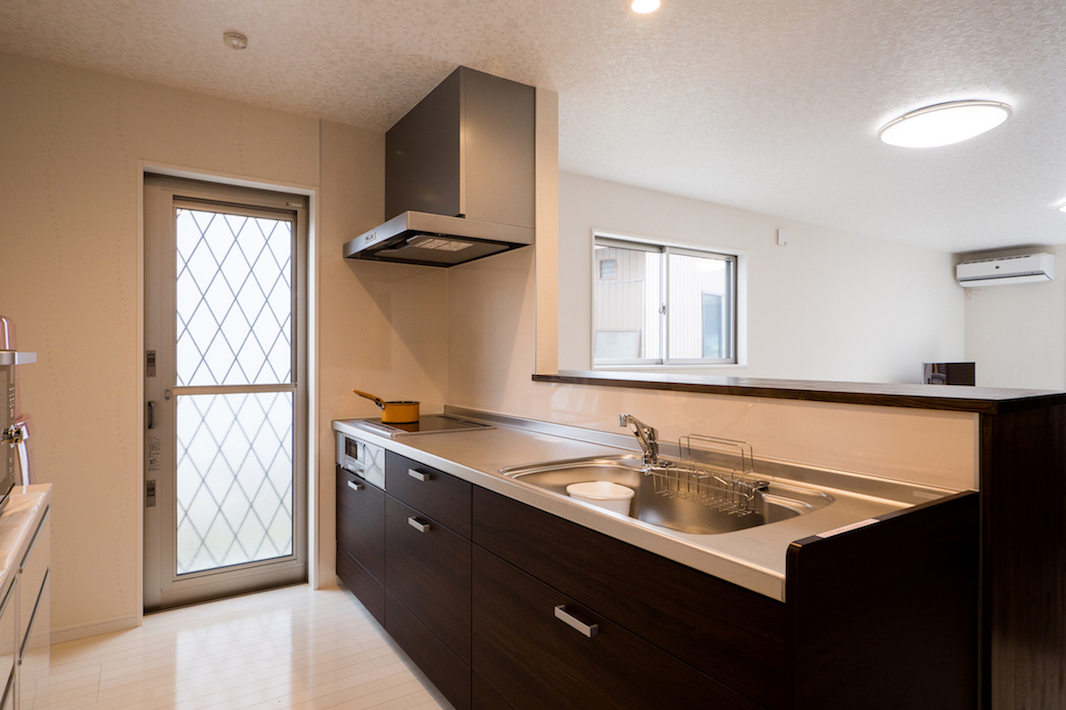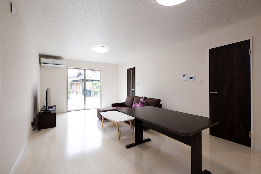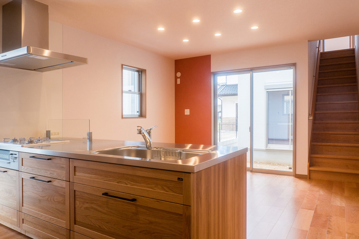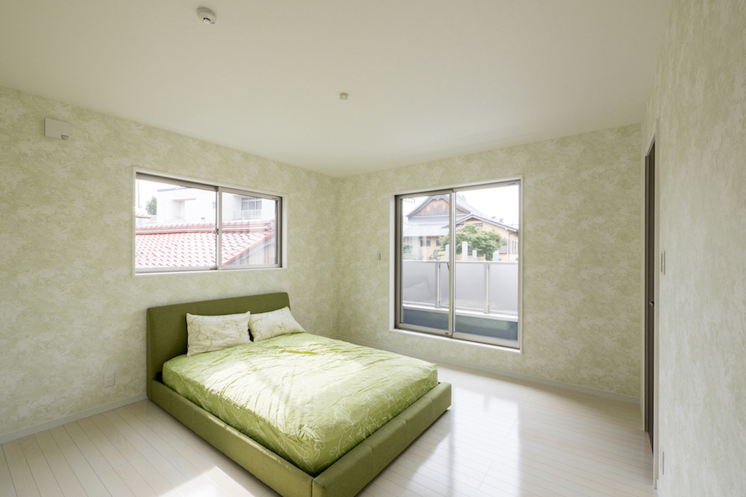 広いリビングダニングはキッチンから見渡しがとてもよい空間となっています。癒やしの緑を基調とした寝室など家族との時間、プライベートの時間を大切にしたい施主様の想いを設計に活かしています。